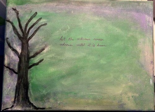 After my family’s Christmas morning, I knew the way to complete the painting! I added a simple tree and a phrase that states “let the unknown remain unknown until they are known,” something the Lord spoke to me a lot in that season.